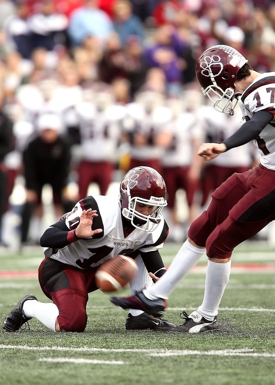 american football, football, kicker, extra point, field goal, holder, pigskin, gridiron, texas football, play, sport, game, competition, team, american football field, helmet, ball, teamwork, kick